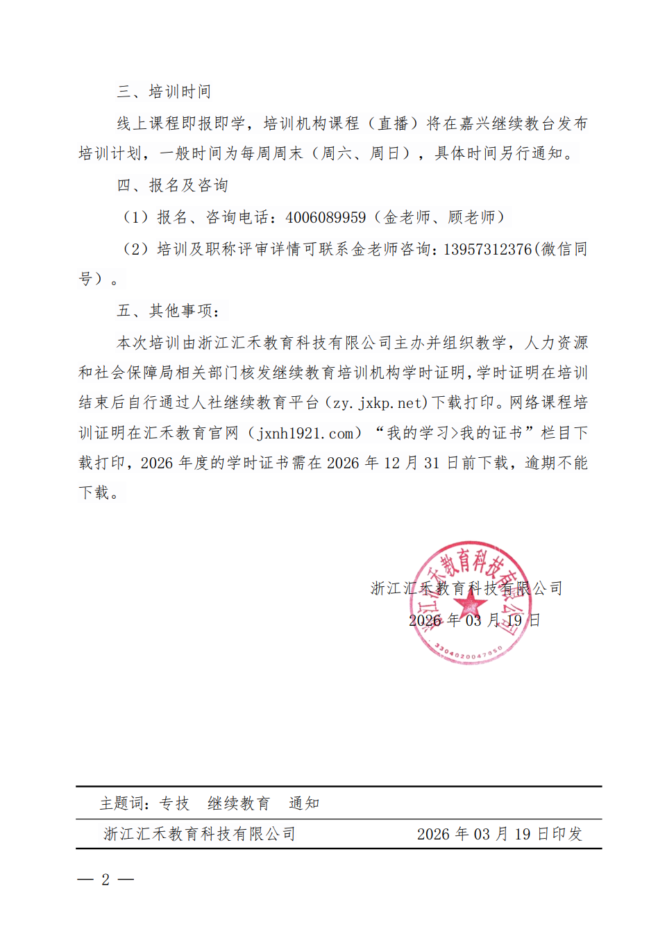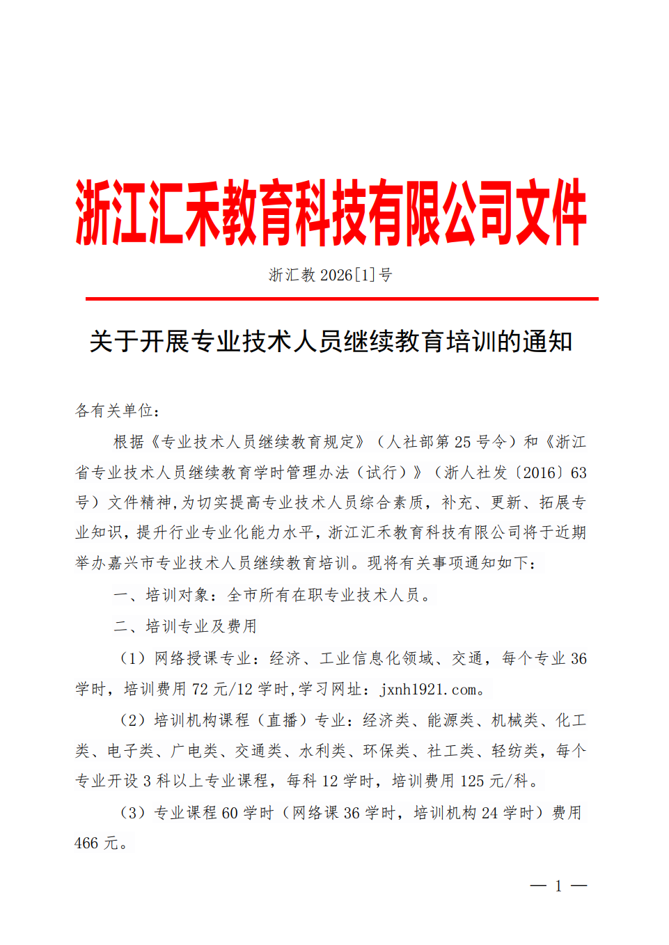 汇禾教育关于开展专业技术人员继续教育培训的通知(2026)